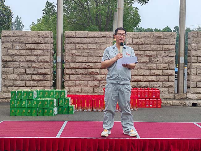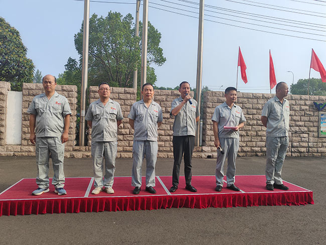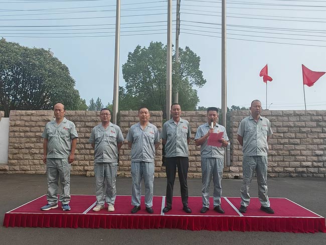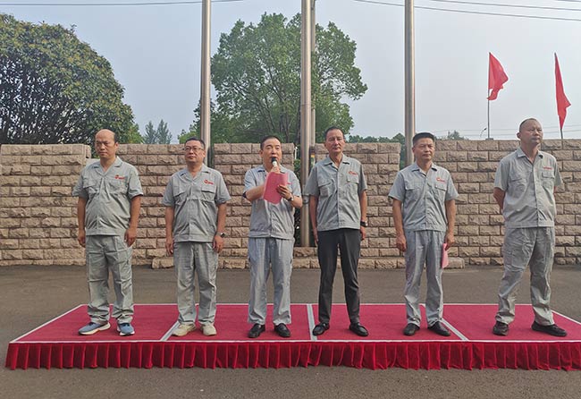 升旗仪式上,杨庆高总经理发表讲话,回顾公司发展历程,勉励全体员工以厂庆为新起点,秉持初心、砥砺前行。随后,各部门依次宣誓:经营销售部以“把握市场,拓展品牌”彰显决心,生产管理部以“安全高效、品质优异”践行承诺,技术开发部以“开拓创新、追求卓越”勇攀高峰……各部门誓言铿锵有力,展现了员工与企业共成长的坚定信念。集体宣誓环节,领誓人常立寒副总带领全体员工高呼企业宗旨与目标,将活动推向高潮。