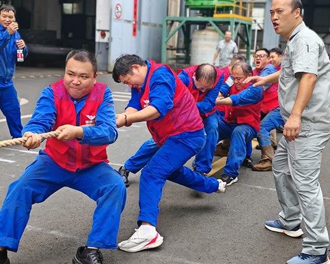 趣味运动会:协同竞技,共享欢乐 董事长曹立宏在升旗仪式后宣布:“旷达威德厂庆纪念日趣味运动会正式开始。”厂区内随即拉开比赛帷幕。本次运动会以“协同进取、分享快乐”为主题,设不倒森林、珠行万里、动力火车、接力传球、趣味拔河五大项目,旨在通过团队协作增强凝聚力。