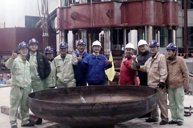 2010年2月10日凌晨,万众期待的6600吨双动油压机试压成功,压制出了“威德封头”处女号!