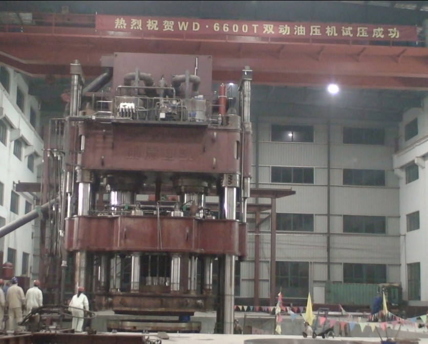 热烈祝贺威德封头6600吨双动油压机试压成功!
