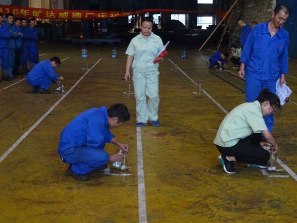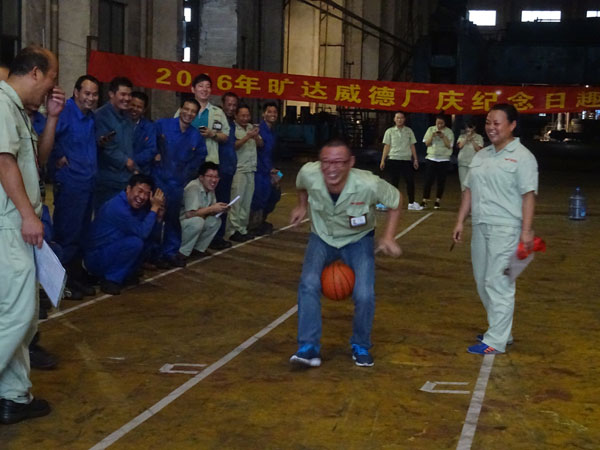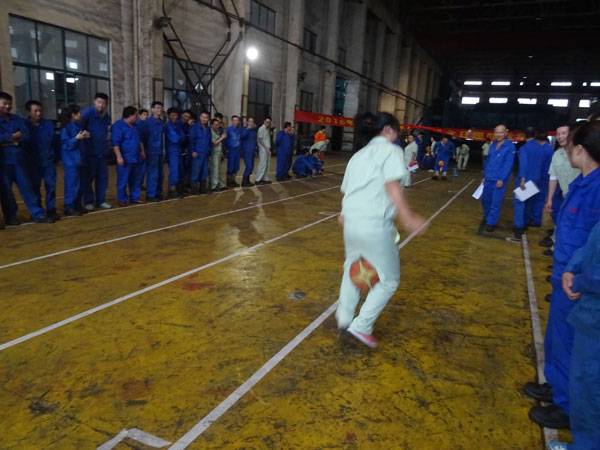 为丰富员工业余生活,展现旷达威德员工健康向上、充满活力的风采,培养员工善于沟通、乐于合作的意识,增强团队凝聚力,增进同事之间的友情,促进员工强健体魄、培养良好的心理素质,又恰逢旷达威德周年庆,公司特举办了此次趣味运动会。当今社会竞争是必须的,但是个人的能力再大,在一个团体乃至一个社会中就是沧海一粟、毫不起眼,所以只有在团队中合作才可以推动着整体走的更远。 2016年9月28日,原本打算在室外举行的趣味运动会因天气原因改在探伤车间如火如荼的展开了。因为参加人数众多,为使比赛相对公平公正,强化员工之间的沟通和合作意识,由运动会组委会根据参赛人员的身体素质、身材情况和能力情况把参赛人员分成八队,并选出相对合适的队长带领各自的队伍进行比赛,队名也由各队自己取,奇思妙想,别出心裁,各有风格:锦衣卫队、凤凰队、匠心队、飞跃队、和谐队、阳光队、腾达队、雄风队。 本次运动会共有五个项目:一、自行车慢骑赛。二、双腿夹球接力赛。三、抢种抢收接力赛。四、齐心跳长绳。五、拔河比赛。首先进行的是自行车慢骑项目。自行车慢骑对自身的平衡能力要求很高,既要让车尽可能的慢行但是又不可以原地不动更加不可以后退,刚开始上场队员进入状态稍慢,后上场的参赛的队员都在慢慢进入状态,持续时间较长。这不,你看还有父子齐上阵,都说上阵父子兵,打虎亲兄弟,这次齐上阵的父子可是代表不同的参赛队哦,努力让自己成绩好一点来为自己队伍争夺荣誉。还有一个亮点,古有花木兰替父从军,而我们这里却是父亲踊跃替还在岗位操作赶产量的儿子参赛,这个行为可歌可泣! 时间一点一滴的地过去,运动会也有条不紊的进行着,你看那边双腿夹球接力赛围观的人还真多呀,刚站在旁边就笑了开来,因为只要求你双腿间夹球并且球不落地到达规定的地点,不要求你是如何到达的。这个时候你就可以看到大家真的是各显神通,尤其是率先上场的几位更是为后面的参赛队员打了个样板,大家都在研究如何更快更稳的冲向终点,取其精华去其糟粕。一路上可以看见大家夹着球,有直面走的,侧面走的,小跑的,跳着行走的反而是最快到达的,当然这一路上笑态百出,毕竟夹着球总归不是那么容易的,所以可以看到那些走路怪模怪样走几步就掉球的,但是旁观的大家笑归笑还是一样会努力的加油。 抢种抢收比赛更加是要求参赛的队员速度和手的精准能力要一起,动静结合,起跑下蹲立刻到位,也就是说滑溜溜的乒乓球可不是那么容易夹的,要求大家合作完成用时最少的队伍获胜。这个比赛也能看出各个参赛选手的性格,大部分参赛选手严格遵守比赛规则,即使球分别滑落在抢收抢种瓶之外,也重新把球归到起点,重新夹球。这个就是赛出速度,赛出风格。 齐心跳长绳顾名思义就是两个人摇着长绳,8个参赛队员游龙式依次在绳落点最低的时候跳入并且不踩到绳子,跳过一次算一个,跳过的队员依次回到队末排队,最后在规定的时间内以个数最多的队伍获胜。这是一个需要人在旁边掌控节奏的,如果节奏乱了跳不过去就会拖整个队伍的时间和进度。 因为每个运动项目都需要按照规定的人数由各队参加,所以这就需要大家的团结协助了。比方说众所周知的拔河比赛,就是最需要合作的一个项目。就算一个人有再大的力气也敌不过绳子对面那拉成一股劲的对手,非但如此,就算大家的力气都是一样的,如果没有好的配合也是没有用的,拔河比赛本来就需要自己的队员相互配合好在正确的时间点使出浑身解数往一致的方向努力才可以成功。如果不是同时使劲的话那力就被分解掉了,就算个人再努力也是没有用的。你看那正在进行的拔河比赛多么的精彩,连董事长曹立宏、总经理卢志平、副总经理杨庆高、龚文伟都亲临现场,为长绳两端的参赛选手们呐喊助威。而双方选手都把拔河绳紧紧的拽在手里,绳子中间的红布条也是随着力道在两边摇晃着,长绳周围的人都在为着各自支持的队伍叫喊着“加油”,看着那一张张涨得通红的脸蛋感受着周围那热情的呐喊声,你会觉得血液都已沸腾了,随着裁判刺耳的哨声吹响,比赛结果出来了,不用说,开心欢叫的肯定是赢的一队啦! 五个运动项目就这样在大家的踊跃参与下顺利结束了,每个项目都是需要大家的齐心配合才会取得好成绩。我们这小队的队名叫凤凰队,取自“凤凰展翅翱翔天际”之意,合作让我们取得了团队第二名的成绩,虽然是第二名,但是大家的脸上都洋溢着胜利的喜悦。作为队长的我在此次活动中也获得了几项单项奖,快被同事们夸赞为全能王了!一花独秀不是春,百花争艳春满园,合作的最高境界是双赢,在旷达威德这个大团体中,每个人都要取长补短,自己进步了整个团队才会有更大的上升空间,固步自封于己于人都无益。
