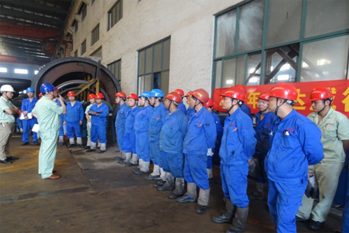 为进一步提高公司职工的生产操作技能水平,引导职工规范操作行车,调动职工劳动积极性,激励职工的学习和比赛精神,6月27日下午,旷达威德举行了“行车安全操作技能竞赛”活动。董事长曹立宏、总经理卢志平、常务副总杨庆高、副总经理龚文伟一同观赛,为生产管理部各班组挑选出来的15位参赛选手们加油助威! 比赛前,由安委办主任徐强为全体行车操作人员作了一次全面的行车安全操作培训。 图1:安委办主任徐强给员工讲解安全操作要领,参赛选手们整装待发,跃跃欲试。