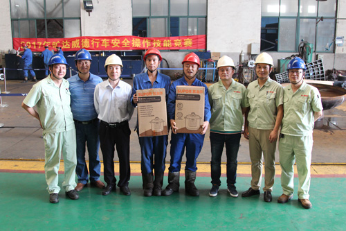 通过这个行车技能竞赛活动总结出,在开行车过程中既要有途中爆发力,又要有控制全场的定力,只有二者结合方能取胜,才能把大奖拿回家,心情乐哈哈! 图5:比赛结束后,公司领导为评选出的2名一等奖、3名二等奖、4名三等奖、6名鼓励奖颁奖。