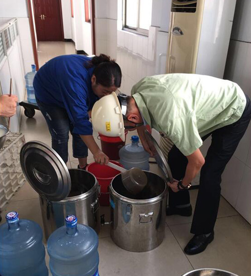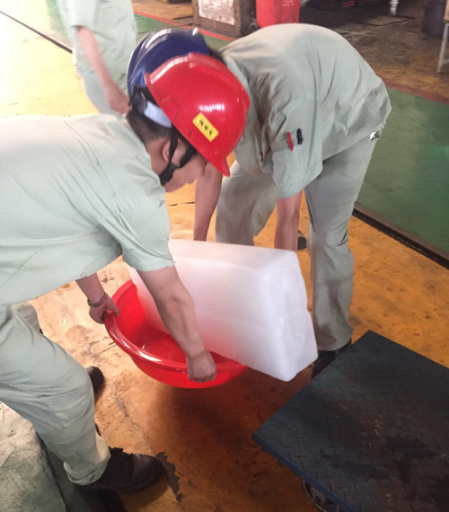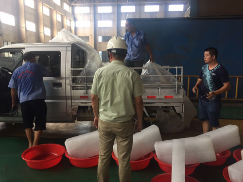 图7、图8为龚总第一时间安排员工把冰块放置在车间各岗位上