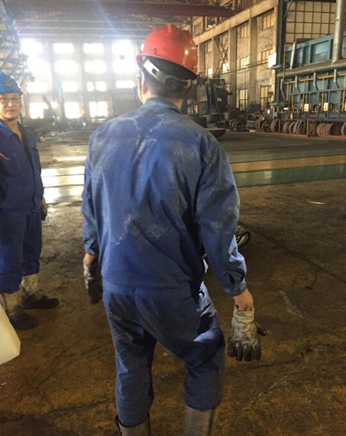 图3、图4、图5为生产同事被汗水反复湿透并析出盐津的工作服