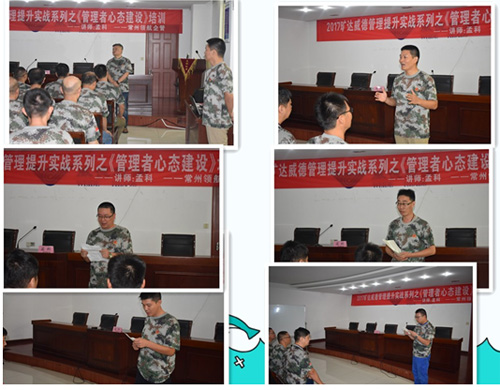 9月23-24日,旷达威德组织所有管理干部参加由本公司和常州领航企业管理顾问有限公司共同举办的 “管理提升实战系列” 之《管理者心态建设》培训课程。公司高层董事长曹立宏、总经理卢志平、常务副总杨庆高、副总经理龚文伟也全程出席此次体验式培训活动。