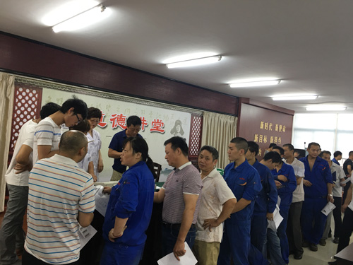 继本年度4月2日、7月2日分别集中安排对新员工、办公室员工进行体检后,于9月7—8日我公司联系武进卫安职业体检中心上门对191名生产一线人员进行了职业健康检查。近年来上级主管部门高度重视员工职业健康安全情况,我公司也本着以关爱员工身体健康、给员工提供福利与便利的原则,为避免不必要的因职业病导致的劳动纠纷,公司特安排全体员工进行职业健康体检。职业健康检查能及早发现疑似职业病,避免已患职业病及职业病禁忌的劳动者从事相应的职业。