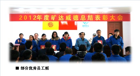 | 各位员工: 2012年度,是公司经历严峻考验的一年。面对困难,全体干部与员工没有退缩,大家精诚合作,共度时艰,为公司解危并最终平稳过渡做出了应有的贡献。 一年来,公司涌现了一批令人感动的先进事迹和先进人物。为在全公司形成争先创优的良好氛围,经研究,决定对评选出的7名模范员工、18名优秀员工进行表彰,以资鼓励。希各位员工能向这些模范、优秀员工学习,认真工作、积极生活,为把“威德封头”早日打造成为第一封头品牌做出更大的努力! 附:模范员工、优秀员工名单 常州旷达威德机械有限公司 2013年1月28日 获奖名单如下: 模范员工: 仇官印 钱晓勇 贾艳伟 张奇勇 索春鸣 刘向贵 吉华平 优秀员工: 丁余民 颜文君 李树武 李慧 韩俊 张红山 黄陆强 张宜宝 丁旭 吴康 虞国平 秦晓华 杭茹玉 王佳 陈晓 丛小兰 钱惠兴 顾和琴  |