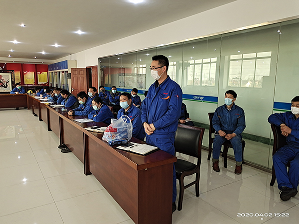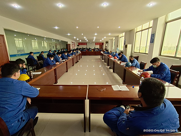 2020年4月2日、9日、11日下午,在常务副总杨庆高的组织策划下,于行政楼三楼大会议室召开了关于安全、质量、交期的培训会议。疫情期间,六十位参会人员全程配戴口罩,分开有序入座,同时认真做好相关学习笔记。