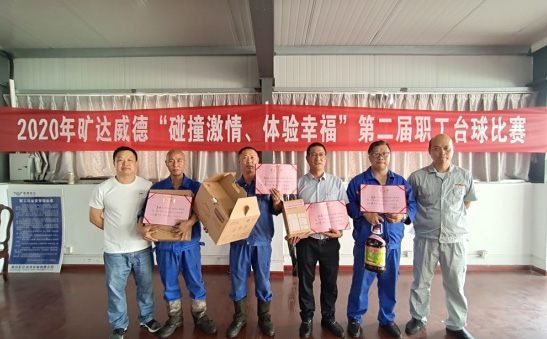 9月26日上午8:00旷达威德“碰撞激情、体验幸福”第二届职工台球比赛在公司职工活动室举行,有25名桌球爱好者踊跃报名,桌球融合了数学和力学的知识,空间和思维互动,参赛者屏气凝神,算好角度,一杆出击,白球随着力量的冲击,滚出了好看的几何线,将彩球碰撞进洞,有意思极了。比赛结束,第一名被生产部陆益文夺得,采购部陈亮获取第二名,第三名被生产部胡勇拿取,生产部老将罗炼取得第四名。