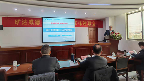 新发展征程 新作为担当 ——旷达威德召开2022年事业计划发布会 2022年1月15日,旷达威德2022年事业计划发布会在公司会议室如期举行。本次事业发布会共分为三项议程:部门述职、事业计划发布会及专项特大奖励仪式。公司领导对本次会议高度重视,特别邀请旷达集团沈介良董事长参加专项特大奖励仪式。旷达威德全体干部和销售人员参加了会议。 2021年是旷达威德是应对市场挑战、经受疫情考验、面临能耗双控的一年、也是危中寻机,攻坚克难,实现经营突破的一年。15日上午8点,全体与会人员齐声高呼“自主创新、振兴产业、贡献国家、回馈社会,做中国最大、最强的封头专业制造商”的口号,拉开了事业计划发布会的序幕。 公司副总经理常立寒主持了本次会议的第一项议程——部门述职,并做了“奋斗中前进”系列讲话。常总指出:新故相推,日生不滞;与时俱进,生生不息,我们要把心思统一在“想干事”上、要把能力展示在“会干事”上、要把胆识体现在“敢干事”上、要把精力集中在“快干事”上。随后公司财务管理部、经营销售部、采购供应部、生产管理部、技术开发部、质量保障部及综合管理部部长分别对本部门2021年工作实绩及不足进行剖析,对工作的重点、难点及措施进行阐述,对2022年工作目标及计划进行展望。各部门长摆数据、讲事实、立目标、谋发展,述职汇报精彩纷呈,赢得全场雷鸣般的掌声!