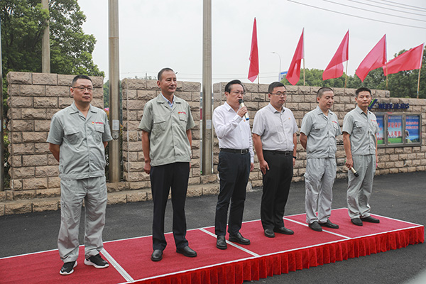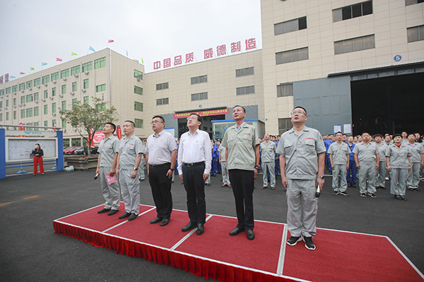 早上七点五十六分,主席台上6位领导已经就位,在《我和我的祖国》的歌曲声中,主持人龚文伟副总手持话筒依次介绍了今天来参加升旗仪式的领导和嘉宾,主席台上从左往右分别站立着常立寒副总经理、曹立宏董事长、雪堰镇党委武为锋书记、雪堰镇副镇长候选人徐卓、杨庆高总经理和龚文伟副总经理,大家以热烈的掌声欢迎上级领导的到来。七点五十八分,升旗仪式正式开始,伴随着雄壮的国歌声,注视着缓缓升起的五星红旗,大家心情澎湃,高唱着义勇军进行曲。接下来旷达威德总经理杨庆高作国旗下讲话。杨总说到当今世界形势复杂,加上新冠疫情的肆虐,全球经济面临着衰退,华为老总任正非提出要将活下来作为主要纲领,要把寒气传递给每一个人。旷达威德在这样的形势下,虽历经风雨,今年继续产销两旺,1~8月份封头销售比去年同期增长18.3%,5月份更是创下了公司开业以来*好的销售记录,为公司10周年厂庆增光溢彩。危机往往伴随着转机和无限的商机,我们相信在曹总的领导下,在全体旷达威德人的努力下,在万吨新压机的加持下,在领导和政府的扶持下,行而不辍,未来可期,没有最好,只有更好的明天。紧接着,雪堰镇党委书记武为锋发表了重要讲话,武书记说雪堰镇近几年发展势头良好,这里面有旷达威德人做出的努力和贡献,充分肯定了旷达威德这几年的发展,他表示十分乐意能和大家一起参加此次十周年庆典升旗仪式,能一起分享旷达威德人的喜悦,一起感受旷达威德人朝气蓬勃的发展脉搏。武书记表示,镇党委、镇政府会扶持旷达威德在创新发展道路上走得更稳,尽可能在政策范围内给旷达威德提供更好的发展平台;希望旷达威德党支部在旷达集团党总支的领导下,通过党建引领,让旷达威德走得更好、更远;通过加强政企合作,为雪堰镇经济和社会事业做出更大的贡献。武书记讲话的*后给旷达威德送上了真切的祝福。接下来,到了分部门宣誓和全体员工呼喊企业宗旨与目标的环节,响亮的口号围绕在广场上空,铮铮誓言展示着威德人的精气神,饱含着威德人的只争朝夕、奋力拼搏的工作激情,争做行业标杆的奋斗目标更是深深印刻在了我们威德人的心头。伴随着绵绵细雨,主持人宣布此次升旗到此结束。