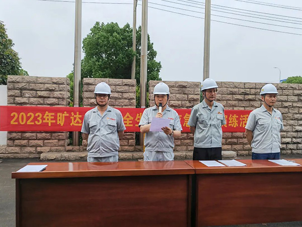2023年6月是全国第22个安全生产月,围绕着“人人讲安全,个个会应急”主题,6月13日下午15:30,一场一百余人参加的综合应急演练活动在旷达威德厂区展开。安委办主任徐强简要的介绍了此次演练开展的重要性、必要性,明确了各演练小组的职责任务,并在总经理杨庆高发表演练动员后,演练正式开始。