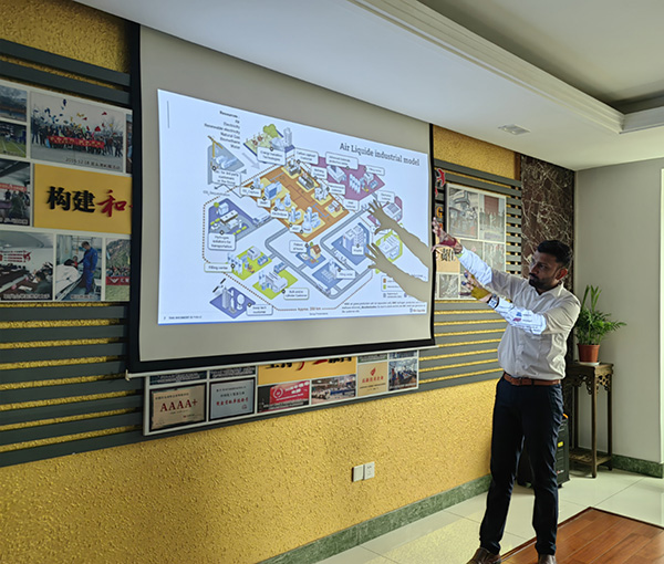 7月3日,海外CRYOLOR采购经理Mr. Mani来访旷达威德,威德总经理杨庆高、技术开发部部长吕向阳,销售海外科科长李立娟等热情接待来宾。Mr. Mani此次来到旷达威德,主要是想通过实地考察和面接交流方式更好的了解威德的软件和硬件实力,以便将来更好的合作。 在接待人员的陪同下Mr. Mani先后参观了创新成果展示厅、生产一线车间、理化实验室、焊材库等,他对威德的规模实力、装备能力和整个加工流程、产品质量的控制给予充分认可,尤其对我们不锈钢表面保护、焊缝表面处理等细节的重视表示赞赏。