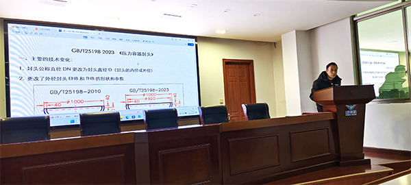 此次培训,对于公司更好的执行新标准,指出了明确的方向。培训中,吕部长对于新标准中的变更处,都一一例举,进行了细致的对比与解读,既加深了与会人员的理解,也便于今后工作中能快速查询,做好新老标准的安全过渡。令我印象最深的是:材料要求的变更、封头尺寸参数的计算、椎体形状描述的变更、产品焊接试板的制备,这些让我们在封头制作中都有了明确的参考标准。