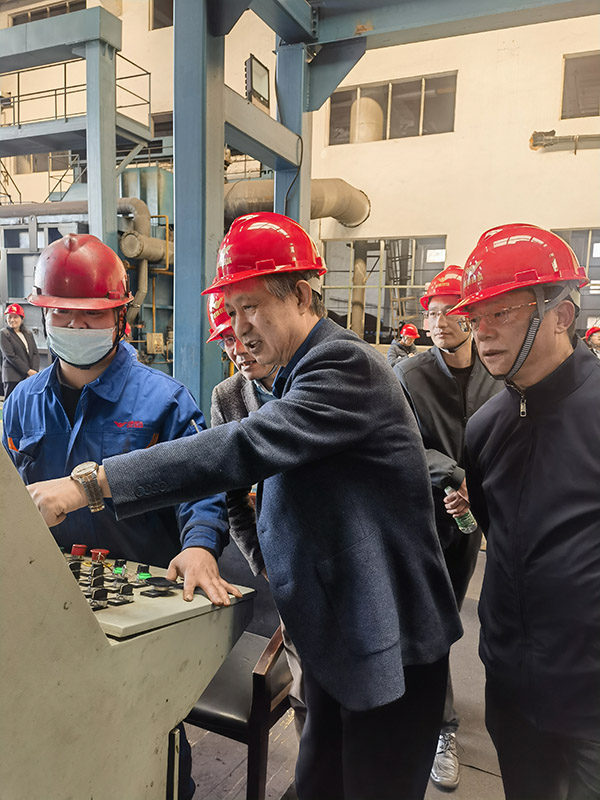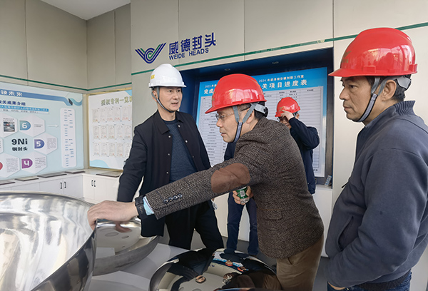 公司董事长曹立宏、总经理杨庆高、副总龚文伟、常立寒、综合管理部部长陈亮热情接待了来宾。在创新成果展示厅,公司近几年创新发展路径、取得的创新成果、技术攻关项目、不同规格的产品等等一一呈现在眼前,让人眼前一亮。接下来大家转移阵地来到车间一线进行参观,一进3号车间,映入眼帘的就是庞然大物般的万吨压机。大家感兴趣的在操作台边看着员工的操作,趁着空闲询问相关产品的技术参数和制作工艺。一路渐进,见证着封头的完整生产工艺流程,每一个细节每一个工序都影响着最终产品品质,各协会分会主任委员三两成群,或者围作一团,就某个工序的工艺技术进行热烈探讨。结束车间参观后,大家来到公司党群服务工作室交流座谈。曹董首先介绍了公司的发展现状及未来规划,大家看着工作室满墙的荣誉奖牌,都肯定了公司的经营发展成绩。协会执行副理事长张金说现在的旷达威德和他曾经来见识的威德已经有了质的变化,不管是生产管理、企业文化建设还是引进先进设备,都已成为行业翘楚。张副理事长还对企业未来的规划发展给出了中肯的建议,他说到近几年的锻造、冲压和钣金制作行业发展面临“双碳”挑战和应对压力,公司必须重视碳达峰和碳中和工作,做好能源管控;必须准确理解和把握数字化、自动化、信息化概念,必须重新认识装备和生产线,利用先进的智能设备和数控技术来改善生产工艺,但是需要认真研究投入条件,避免盲目投资造成浪费;规划好企业智改数转蓝图,立足实际需求,从企业最痛处、最关注的地方入手进行数字化转型设计和改造,达到立竿见影、高度契合的目的。