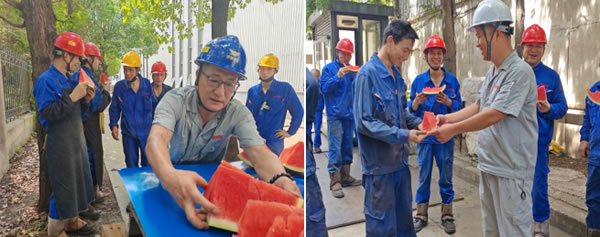 ——旷达威德防暑降温在行动 炎炎夏日,酷暑难耐,持续的高温天气给人们的生活和工作带来了极大的挑战。然而,在旷达威德的车间里,却涌动着一股清凉的关怀之风,让员工们在酷热中感受到了丝丝凉意和满满的关爱。 为了应对高温天气,从7月下旬开始,旷达威德车间就24小时不间断地打开了冷风机、负压风机等降温设施,为员工们创造一个相对凉爽的工作环境。这些设施的运行,有效地降低了车间内的温度,让车间岗位上的温度比室外温度要低3~5度,减轻了员工们在工作时的炎热感,提高了工作效率。 除了改善工作环境,公司日常还致力给员工多批次“送清凉”:每天有专人在5个固定时间段向一线员工发放冰镇盐汽水;每天下午12:30准时为车间一线员工配送冰镇的酸梅汤或者橙汁;入伏以后每天下午两点左右由综合管理部和生产管理部相关领导轮流为车间人员送去大西瓜。这些清凉饮品和水果,不仅解渴消暑,也让员工们感受到了公司领导的关心和重视,让员工们在高温下能够保持良好的工作状态。