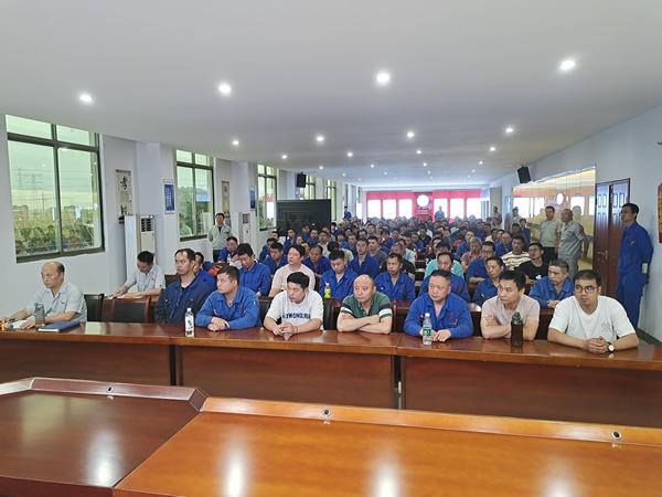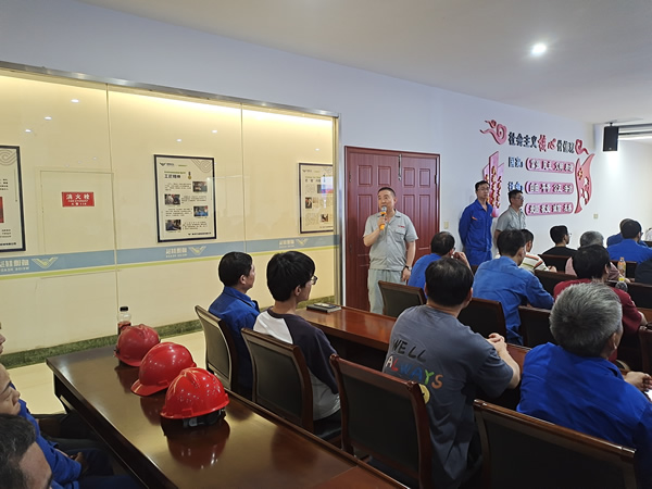 生产管理部副部长袁祖强则从公司整体安全管理的角度出发,对安全生产方面的要求进行了全面阐述。他强调了安全生产的重要性,要求员工始终将安全放在首位,确保生产活动的顺利进行。旷达威德作为封头制造行业的头部企业,要求生产一线的管理干部“管生产必须管安全”。同时对全体员工提出三个怎么办的问题反思。①生产现场钢板和设备、各类在制产品多,一线员工没有严格按章办事,违章现象时有发生,甚至有部分员工已经麻痹,我们怎么办?②基层队长在平时工作中不关注工作细节,工作图省事,有偷懒思想不能合格带队生产,甚至自己都在违章,怎么办?③干部层面的安全隐患和违章认识高度不够,执行不到位,平时碍于情面,管理不到位,做不到违章必查、违章必究,怎么办?