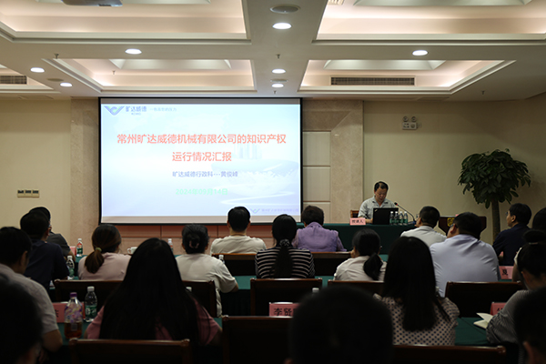 2024年9月13日下午,武进区市场监督管理局“堰阵赋能、知保助力”市监柠IP会客厅乡镇行——走进雪堰知识产权培训活动在旷达科技集团举行。该活动意在为属地企业提供公益性知识产权服务。武进市监局副局长张利萍、雪堰镇副镇长孙俊、常州市知识产权协会秘书长刘勇军等领导参加了此次活动,常州旷达威德机械有限公司行政科科长黄俊峰受邀参加了本次培训。  会议一开始雪堰镇经发办主任彭锦对与会人员提出了此次会议的目的:希望辖区内制造业企业在科技创新方面继续坚持高质量发展的前进方向,企业自身要积极做好知识产权转化成经济效益的工作,加强知识产权保护与服务能力。