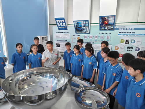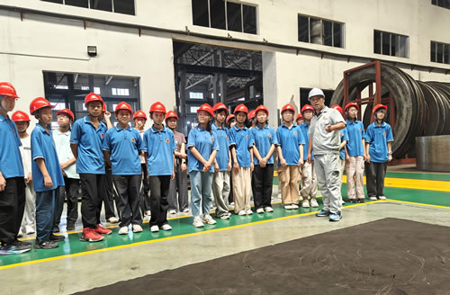 在专业引导下,学生们目睹了封头从厚实钢板到精密成型的全过程。自动化设备精准舞动,巨型压机沉稳发力,火花在严谨控制下飞溅——冰冷的金属在智慧与技术的锻造中焕发新生。每一步工艺都化为具象的工业语言,向年轻的眼睛讲述着“中国制造”背后精密如齿轮咬合的分工协作与流程力量。