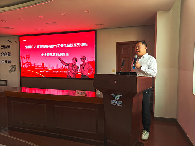 —以专业赋能筑牢安全防线,以责任担当护航企业发展 2025年9月19日,常州旷达威德机械有限公司在行政楼三楼职工学堂隆重举办“安全领航者的必修课”专题培训,特邀安全管理专家恽建春老师主讲。公司各级安全负责人、生产管理骨干及关键岗位员工齐聚一堂,共同参与这场聚焦安全合规、赋能责任担当的深度培训。  角色重塑:从“旁观者”到“安全领航者”的觉醒 培训开篇直指核心,通过“安全与生产、进度、成本冲突时的决策”互动讨论,结合常州市九龙汽车灯具厂“5·30”较大火灾事故中朱银海、朱永平、蒋天磊等责任人被依法追责的惨痛案例,深刻阐释“安全至上”的红线地位。恽建春老师强调,安全管理绝非单一部门职责,而是“管行业必须管安全,管业务必须管安全,管生产经营必须管安全”的全员责任。课程明确安全管理人员需从“警察”“消防员”转型为“教练”“设计师”,通过提升法律政策能力、风险管理能力和领导影响力,主动构建“预防为主、全员参与”的安全管理格局,真正成为企业安全的“领航者”。