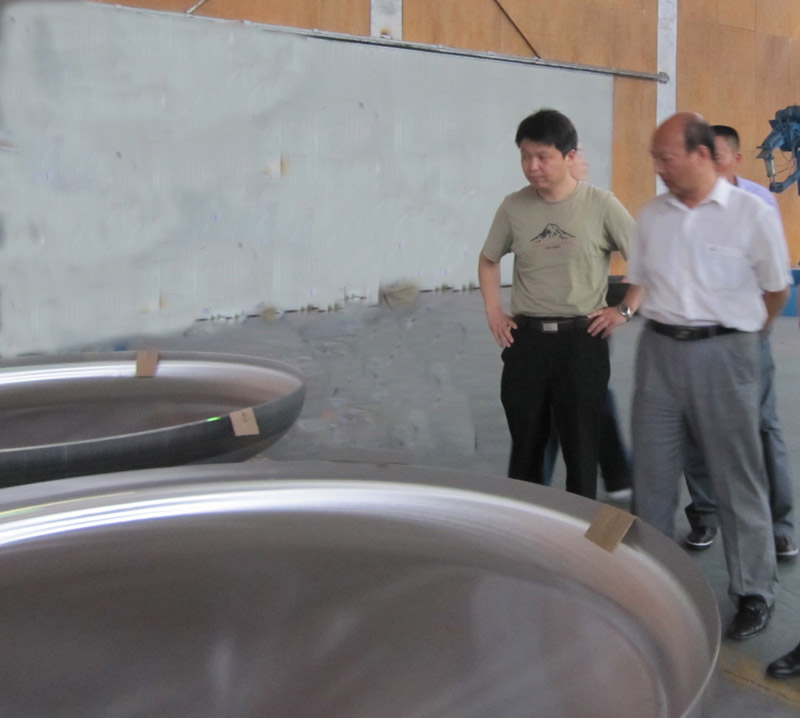 王健总经理和协会领导合影留念 领导参观威德封头 |