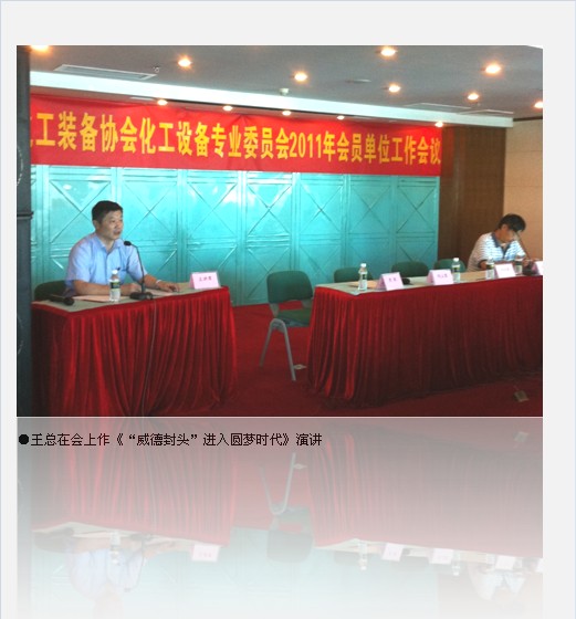 会上,王健总经理作了以《‘威德封头’进入圆梦时代》的主题演讲,演讲通过“‘威德封头’以振兴民族产业为己任、以打造一流品牌为目标、以服务高端领域为方向、以确保客户满意为宗旨”四大乐章详细介绍了公司的发展历程与所取得的骄人业绩,逐显“威德封头”已进入拥有自主封头品牌的圆梦时代。