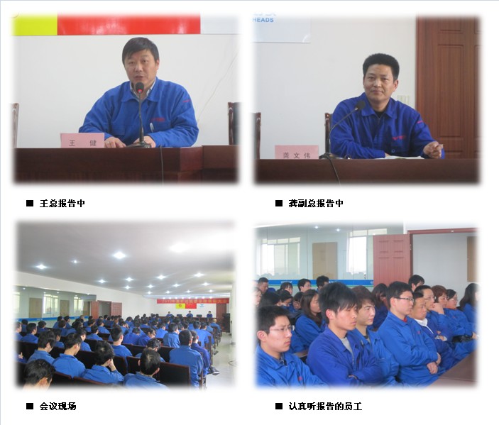 —— 记WD三月份员工大会 一年之计在于春。今年的春天和往年相比似乎来得更早些,三月初已是阳光明媚,春风和煦。也许是急于播下新的希望,为今年开个好头,3月8日,WD迎来了春节后的第一次员工大会,大会由龚文伟副总经理主持并作重要讲话。 会上,王健总经理首先向WD全体妇女同志以及男员工的家属致以节日的祝贺和亲切的问候,接着他通报了一、二月份公司的生产、经营情况,其中一月份生产封头941吨,不锈钢比例53%,二月份生产封头506吨,其中不锈钢占比为56.5%。王总表示,三月份的封头市场行情与天气一样,日渐趋暖。 然后,龚文伟副总经理就WD在今年薪酬制度改革和相关管理制度的施行等方面作了重要讲话。他首先结合国家“两会”对 GDP增长率和PMI等指数进行了简要分析,阐述了依然趋紧的宏观经济形势和旷达威德日益发展的良好势头,要求员工们“认清形势,珍惜机会”。接着他宣讲了公司薪酬制度改革的主要方向,指出公司在已为员工缴纳五险一金的基础上,将改“日薪制”为“月薪制”,并落实多项惠工政策。新的薪酬体系将直接与公司的经营业绩、品质提升、成本优化,以及员工的技能水平和劳动效率等挂钩,他要求全体员工“积极进取,创造机会”,努力提高自身技能,不断改善产品品质,积极优化生产经营成本,切实为自己、为公司共谋利益,共同发展。 龚副总最后强调,员工要做到爱厂如家,行为规范,时时刻刻维护公司的形象,要有心、用心、细心、耐心地做好每一件事,不断提高创新发展意识,主动为公司的发展建言献策,用实际行动,在为公司发展做出更多更大贡献的同时,不断提高自身地位、实现自身价值。
