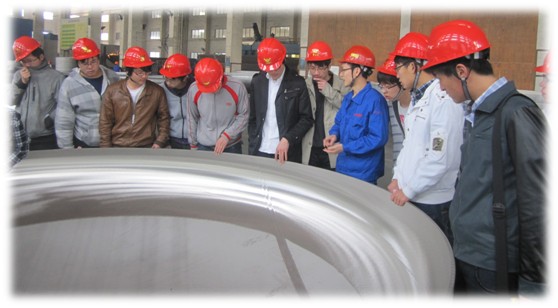 | 4月24日上午9点,常州大学材料科学与工程学院金属材料工程系60名本科生在该校两位老师的带领下来到旷达威德参观实习。事前公司进行了周密布置和安排,并组织人员进行了认真接待。 龚文伟副总经理首先带领他们来到行政楼大会议室,播放了我公司的系列宣传片,让全体师生认真观看,并就公司简介、封头的用途、公司内主要生产装备以及公司的技术团队等对他们一一作了具体介绍。 接着龚副总带领他们来到行政楼大厅,让他们排队领取了安全帽和宣传资料,并分成四组,在接待人员(邱庆军、郭强、蒋琍松、宋辉)的带领下参观了生产现场。四位陪同人员边走边为他们讲解每道工序的制作流程和要求,让他们在感受热火朝天的劳动现场的同时,对我公司的封头产品有了较为直观的认识。 参观完以后,大家一起回到大会议室,由公司管理部蒋琍松部长和材料责任工程师郭强给他们作了封头生产方面的技术报告,并面对面地回答了学生们提出的一个个问题。 三个小时的参观学习活动,让全体师生对我公司的快速发展感触很深,纷纷表示希望能够进一步加强校企之间的合作和交流,以实现双赢。活动结束前,魏老师代表学校与公司签订了一份校企合作协议,使我公司成为常州大学的校外合作基地,今后不仅可以优先从该校引进优秀毕业生作为人才储备,而且能为公司产学研发展提供更好的外部条件。 参观工厂