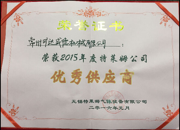 近日,在无锡特莱姆气体设备有限公司的年会上,常州旷达威德机械有限公司被无锡特莱姆评为“优秀供应商”。2015年度旷达威德以合理的价格、优异的品质、及时的交货期、热忱的售后服务等多方面的出色的表现,极大地支持和配合了特莱姆公司,使特莱姆公司在2015年度再创辉煌。 感谢广大客户对旷达威德的赞扬与认可,旷达威德将继续秉承“共存共赢”的理念,乐于与广大客户和谐合作,共创未来!