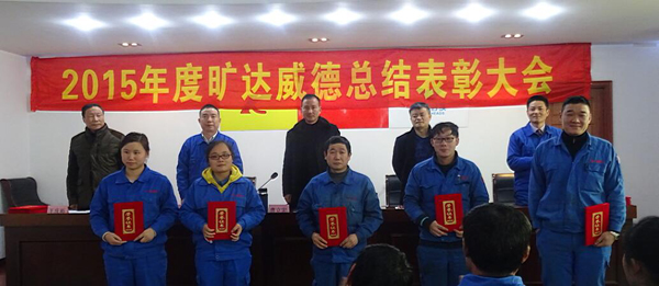 律回春晖渐,万象始更新。2月1日下午2点整,旷达威德一年一度的年终总结表彰大会在行政楼三楼大会议室隆重召开。公司董事长曹立宏先生、总经理卢志平先生与全体员工一起与会,会议由行政副总龚文伟主持。 卢总首先代表公司管理层向全体员工表达新年的诚挚祝福,并总结2015年度工作。卢总说,刚刚过去的2015年,世界经济增速缓慢,中国经济也面临深层次的产业结构调整,经济下行压力持续加大,多行业面临亏损。在此艰难而严峻的形势下,旷达威德也负重前行,在全体员工的共同努力下,公司各方面工作均取得了一定的成绩。各部门严格管理,明晰责任,尽心尽力,全公司展现出团结一心、积极向上、高效务实的良好工作氛围,管理水平越趋成熟,员工岗位技能也逐渐提高。卢总发布了2016年的经营目标,并指出在新的一年,我们将面临更多的困难与风险,迎接更大的挑战,全体员工要团结一致,奋发进取,利用公司现有的优势,挖掘和整合资源,加大研发力度,进一步提高产品质量,努力突破销售瓶颈,争取掌握更多市场竞争的主动权,为完成全年经营目标加油。 其次,生产副总杨庆高请出33位员工代表集体高声背诵旷达威德质量方针。随后,杨副总发表了题为《质量铸就品牌,质量创造辉煌》的讲话。杨总回顾了2015年封头制作情况,指出交货合格率、工作合格率、焊接合格率、内部返修率等4个重要质量指标都取得了一定的进步,同时在生产和技术课题方面也取得了一定的成绩,这些都跟全体生产、技术、质保人员的努力付出分不开的。杨副总还指出,2016年我们将再接再厉,继续开展全员培训、教育指导、检查监督、质量赏罚等工作,不断提升威德封头品牌的美誉度。 接着,曹立宏董事长就卢总和杨副总的发言作了总结和延伸。曹董的发言主题是《全员共担,合力奋进》,他着重提出要实现公司经营目标,必须依靠公司上下每个人的团结奋斗,只有加强全员绩效考核,让全体干部员工的薪水与公司的生产及经营效益相挂钩,才能化压力为动力,变动力为活力。同时,曹总指出,一个公司的发展壮大不仅需要科学的管理,更需要有一批一流的员工,公司自2016年起将实行员工职业技能评定制度,通过对员工实行技术技能等级评定,来确定员工的薪资待遇。技术技能评定制度将为员工构建职业上升通道,并为员工创业创新提供更广阔的舞台。伴随着高亢的音乐旋律,大会对2015年度涌现的23名先进个人和部分优秀集体进行了表彰奖励,以感谢他们一年来对公司的默默奉献。 最后,龚文伟副总向全体员工介绍新年有关工作打算,并对年终及春节放假事项作了详细说明。 这次大会全面总结了2015年的工作事项,明确了2016年的工作目标的经营策略,让我们继续发扬“开拓创新,精诚敬业”的员工精神,为完成2016年的经营目标努力奋斗!