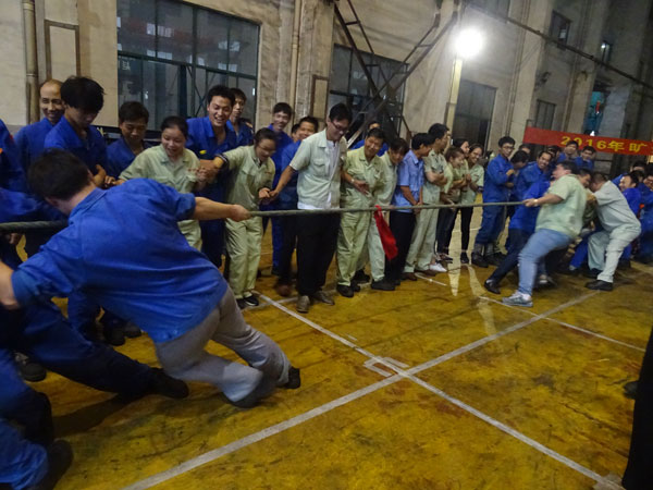 为丰富员工业余生活,展现旷达威德员工健康向上、充满活力的风采,培养员工善于沟通、乐于合作的意识,增强团队凝聚力,增进同事之间的友情,促进员工强健体魄、培养良好的心理素质,又恰逢旷达威德周年庆,公司特举办了此次趣味运动会。当今社会竞争是必须的,但是个人的能力再大,在一个团体乃至一个社会中就是沧海一粟、毫不起眼,所以只有在团队中合作才可以推动着整体走的更远。 2016年9月28日,原本打算在室外举行的趣味运动会因天气原因改在探伤车间如火如荼的展开了。因为参加人数众多,为使比赛相对公平公正,强化员工之间的沟通和合作意识,由运动会组委会根据参赛人员的身体素质、身材情况和能力情况把参赛人员分成八队,并选出相对合适的队长带领各自的队伍进行比赛,队名也由各队自己取,奇思妙想,别出心裁,各有风格:锦衣卫队、凤凰队、匠心队、飞跃队、和谐队、阳光队、腾达队、雄风队。 本次运动会共有五个项目:一、自行车慢骑赛。二、双腿夹球接力赛。三、抢种抢收接力赛。四、齐心跳长绳。五、拔河比赛。首先进行的是自行车慢骑项目。自行车慢骑对自身的平衡能力要求很高,既要让车尽可能的慢行但是又不可以原地不动更加不可以后退,刚开始上场队员进入状态稍慢,后上场的参赛的队员都在慢慢进入状态,持续时间较长。这不,你看还有父子齐上阵,都说上阵父子兵,打虎亲兄弟,这次齐上阵的父子可是代表不同的参赛队哦,努力让自己成绩好一点来为自己队伍争夺荣誉。还有一个亮点,古有花木兰替父从军,而我们这里却是父亲踊跃替还在岗位操作赶产量的儿子参赛,这个行为可歌可泣! 时间一点一滴的地过去,运动会也有条不紊的进行着,你看那边双腿夹球接力赛围观的人还真多呀,刚站在旁边就笑了开来,因为只要求你双腿间夹球并且球不落地到达规定的地点,不要求你是如何到达的。这个时候你就可以看到大家真的是各显神通,尤其是率先上场的几位更是为后面的参赛队员打了个样板,大家都在研究如何更快更稳的冲向终点,取其精华去其糟粕。一路上可以看见大家夹着球,有直面走的,侧面走的,小跑的,跳着行走的反而是最快到达的,当然这一路上笑态百出,毕竟夹着球总归不是那么容易的,所以可以看到那些走路怪模怪样走几步就掉球的,但是旁观的大家笑归笑还是一样会努力的加油。 抢种抢收比赛更加是要求参赛的队员速度和手的精准能力要一起,动静结合,起跑下蹲立刻到位,也就是说滑溜溜的乒乓球可不是那么容易夹的,要求大家合作完成用时最少的队伍获胜。这个比赛也能看出各个参赛选手的性格,大部分参赛选手严格遵守比赛规则,即使球分别滑落在抢收抢种瓶之外,也重新把球归到起点,重新夹球。这个就是赛出速度,赛出风格。 齐心跳长绳顾名思义就是两个人摇着长绳,8个参赛队员游龙式依次在绳落点最低的时候跳入并且不踩到绳子,跳过一次算一个,跳过的队员依次回到队末排队,最后在规定的时间内以个数最多的队伍获胜。这是一个需要人在旁边掌控节奏的,如果节奏乱了跳不过去就会拖整个队伍的时间和进度。 因为每个运动项目都需要按照规定的人数由各队参加,所以这就需要大家的团结协助了。比方说众所周知的拔河比赛,就是最需要合作的一个项目。就算一个人有再大的力气也敌不过绳子对面那拉成一股劲的对手,非但如此,就算大家的力气都是一样的,如果没有好的配合也是没有用的,拔河比赛本来就需要自己的队员相互配合好在正确的时间点使出浑身解数往一致的方向努力才可以成功。如果不是同时使劲的话那力就被分解掉了,就算个人再努力也是没有用的。你看那正在进行的拔河比赛多么的精彩,连董事长曹立宏、总经理卢志平、副总经理杨庆高、龚文伟都亲临现场,为长绳两端的参赛选手们呐喊助威。而双方选手都把拔河绳紧紧的拽在手里,绳子中间的红布条也是随着力道在两边摇晃着,长绳周围的人都在为着各自支持的队伍叫喊着“加油”,看着那一张张涨得通红的脸蛋感受着周围那热情的呐喊声,你会觉得血液都已沸腾了,随着裁判刺耳的哨声吹响,比赛结果出来了,不用说,开心欢叫的肯定是赢的一队啦! 五个运动项目就这样在大家的踊跃参与下顺利结束了,每个项目都是需要大家的齐心配合才会取得好成绩。我们这小队的队名叫凤凰队,取自“凤凰展翅翱翔天际”之意,合作让我们取得了团队第二名的成绩,虽然是第二名,但是大家的脸上都洋溢着胜利的喜悦。作为队长的我在此次活动中也获得了几项单项奖,快被同事们夸赞为全能王了!一花独秀不是春,百花争艳春满园,合作的最高境界是双赢,在旷达威德这个大团体中,每个人都要取长补短,自己进步了整个团队才会有更大的上升空间,固步自封于己于人都无益。
