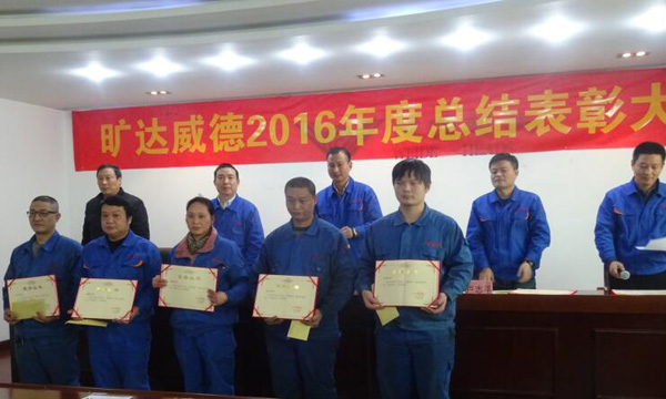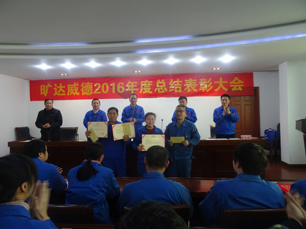 金猴留恋丰收年,彩凤欢啼盛世春。1月23日下午2点整,旷达威德一年一度的年终总结表彰大会在行政楼三楼大会议室隆重召开。公司董事长曹立宏先生、总经理卢志平先生与全体员工一起与会,会议由行政副总龚文伟主持。 卢总首先代表公司管理层向全体员工表达新年的诚挚祝福,并对公司2016年度工作进行总结。卢总说,刚刚过去的2016年,虽然整个大环境经济形势还很严峻,竞争也愈发激烈,但我们旷达威德全体员工共同奋进,齐发拼搏,公司各方面工作相比于上一年度均取得了可喜的成绩。在过去的一年,公司的规章制度得到了进一步的建立与完善,企业的产品质量和品牌知名度得到了进一步提高,企业文化得到了进一步的塑造,员工的工作理念也得到了进一步的提升,同时公司也涌现出了许多任劳任怨、埋头苦干的好员工,这一系列的作为使公司赢得了社会各界的认可。其次卢总发布了2017年的经营目标与计划,并指出在新的一年,我们将面临更多的困难会有更大的挑战,全体员工要团结一致,奋发进取,争创高效务实的良好工作氛围,进一步提升人员的综合素质和业务技能。个人应主动提高标准要求,才能顺应公司的长远发展。我们更要审查自己,发现不足,提出问题,并彻底解决问题,因为我们的做大做强之路任重而道远! 其次,常务副总杨庆高就2016年生产、质量、设备等问题进行总结发言。杨总首先回顾了2016年封头制作情况,指出交货合格率、生产交期、焊接合格率、内部返修率,钢板利用率等重要数据指标都取得了一定的进步,同时在生产质量和技术课题方面也取得了一定的成绩,这些都跟全体生产、采购、技术、质保人员的努力付出分不开的。杨副总还指出,2017年我们将进一步巩固内部质量,突破表面质量,也将继续开展全员培训、教育指导、检查监督、质量赏罚等工作。如果做不好,达不到工作要求,跟不上公司发展步伐,经过学习培训后仍然没有改进与提高,公司将进行必要的淘汰,故倡导全体员工要不断学习并提高执行力,为公司的发展贡献自己应有的力量。 接着,曹立宏董事长作重要讲话,首先对卢总和杨副总的发言作了充分肯定,接着,他要求全体干部和员工明确方向——树立目标,并对大家提出了要求。曹总表示2017年是旷达威德发展的关键年,公司必须自立向前发展,稳步实现公司的短、中、长期规划,坚定做行业龙头的信心,积极引领行业发展。同时曹董告诫干部:一切要以公司利益为重,去私欲,树榜样,能吃苦,讲奉献,抓管理,抓落实,抓执行,求创新;员工们要学技能,学精细,求革新,做工匠。曹董还谈到,作为生产制造型企业,我们的产品质量要过得硬,威德封头品牌才能叫得响!安全生产是企业发展之根本,公司各部门要把安全工作放在第一位,狠抓落实,杜绝一切安全隐患。要实现公司经营目标,就必须开源节流,向两头要利润,全员要千方百计节约公司各项费用,降低采购成本,力争订单量价齐增,确保2017年有利经营! 紧接着,会场伴随着激昂的音乐旋律,公司领导对2016年度涌现的17名先进个人和部分优秀集体进行了表彰奖励,以感谢他们一年来对公司的默默奉献。 最后,龚文伟副总向全体员工宣告2017年的工作绩效考核要求,并介绍新年有关人事行政、党群、工会的工作打算,并对年终福利及春节放假事项作了详细说明。 本次员工总结表彰大会全面总结了2016年度的工作事项,明确了下一年度工作目标及经营策略。我们旷达威德全体员工定会为2017尽心尽力,尽职尽忠!
