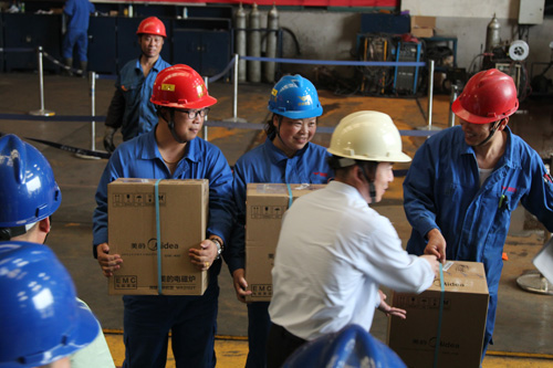 通过这个行车技能竞赛活动总结出,在开行车过程中既要有途中爆发力,又要有控制全场的定力,只有二者结合方能取胜,才能把大奖拿回家,心情乐哈哈! 图5:比赛结束后,公司领导为评选出的2名一等奖、3名二等奖、4名三等奖、6名鼓励奖颁奖。