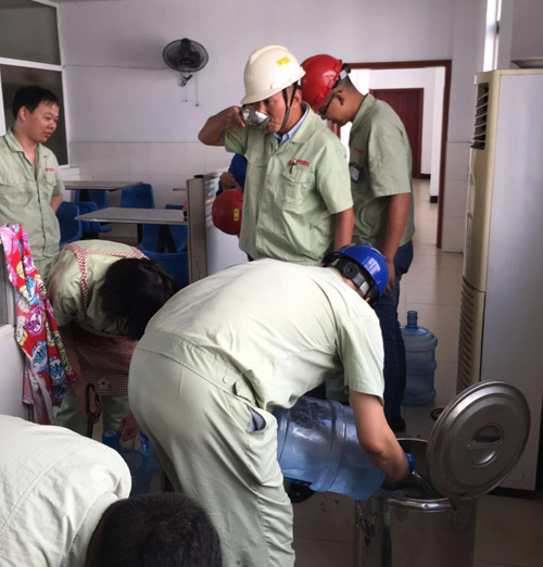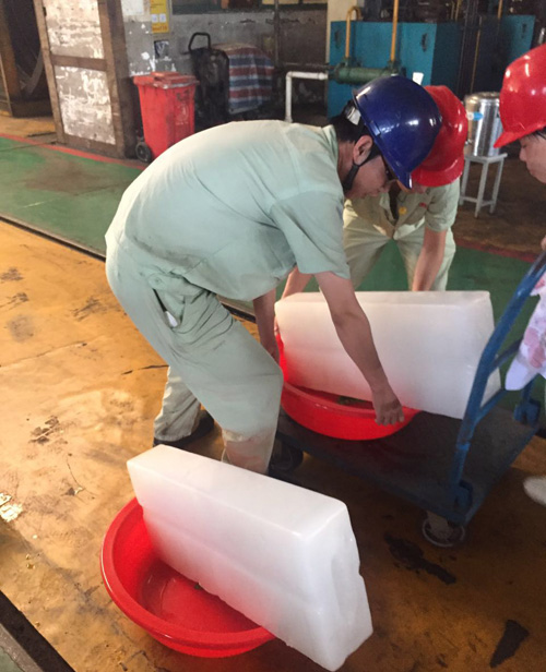 图7、图8为龚总第一时间安排员工把冰块放置在车间各岗位上