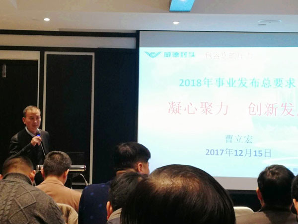 卢总发言 下午1点,2018年事业发布会在高亢的口号声中正式开始,公司总经理卢志平首先作《精诚团结,携手共进,开创更加美好的明天》主旨报告,他总结了2017年度各项事业指标的达成率,愉快地与大家分享了今年完成的经营实绩之最,发布了2018年的事业目标,并分析了目前公司存在的主要问题,给出了许多建议和对策,卢总还结合各部门的实际,给各部门提出了攻关课题。紧接着财务总监王庆裕就如何加强目标管理、提高经营效益给出了三条路径,即提升价格、增加销售是实现目标提高效益的首要途径;提高产量、保证质量、降低成本是实现目标提高效益的根本保证;开源节流,增收节支,减少费用支出是实现目标提高效益的必由之路。随后,常务副总杨庆高作了题为《新思维、新理念、新目标、新征程》的报告,他就生产、质量、技术等方面作了综合回顾后,就2018年的工作计划提出了三条要求,即质量第一、客户至上;提高产能、确保交期;整理整顿、改善环境,并表示旷达威德这个团队在追梦的路上“一切皆有可能”。接着,行政副总龚文伟作了《提升精气神,增强软实力》的报告,他在简要回顾公司走过的艰辛历程的基础上指出当下旷达威德已经开启了持续盈利的威德封头新时代,并就“培训引领、评价激励、考核导向、服务提升、文化打造”五个方面对管理干部提出了具体要求,他还代表公司公布了2018年新的组织架构和职务变动情况、新的工资体系和绩效考核方案。接下来,公司董事长曹立宏先生语重心长地发表了题为《凝心聚力,创新发展》的重要讲话,曹董要求全体管理干部要确定目标,扬帆起航;不忘初心,迎难而上;遵循规律,创新发展;加强文化建设,秉承一贯理念;凝心抱团,聚力奋进。曹董号召全体管理干部要一起来打好企业的“桩”,拧好企业的“绳”,开创旷达威德“威名远扬、德泽四方”的辉煌明天。最后旷达集团董事长沈介良先生表达了发自肺腑的“高兴、感谢、任重”六字感言,沈董表示,他高兴地看到了我们的精气神,看到了旷达威德的希望;他感谢威德管理团队的真诚付出,感谢大家“咬定青山不放松”的韧劲与干劲;他表示我们的管理团队任重但道并不远,只要目标明、措施实、意识好、毅力足,在总部为威德发展减负、威德内部管理到位的基础上,旷达威德一定能圆“上市梦”。沈董的讲话,极大地鼓舞了全体与会人员,他让大家明白了“我们的未来不是梦,我们的心跟着希望在动”,但要“认真地过好每一分钟”!