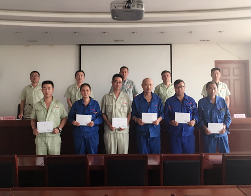 会议最后由卢志平总经理、常务副总杨庆高,副总经理龚文伟分别宣读了第二季度《工艺纪律执行先进班组和个人奖励通报》、《安全生产和卫生先进班组及个人奖励通报》、《第二季度发放改进提案奖的决定》,同时对以上优秀班组和个人予以颁奖。