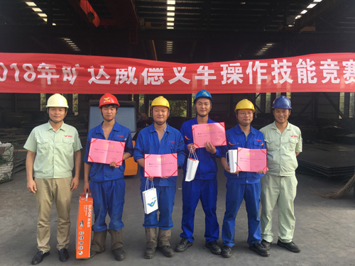 经过2个半小时的精彩角逐,由坡口检查班叉车组余长春拔得头彩,获得冠军,潘志刘、潘志国两兄弟分获二、三名,蒋鹏获得第四名,前四名参赛者皆为叉车组成员,实为众望所归,可喜可贺!比赛结束由工会主席龚文伟、生产管理部部长吴亦平、副部长袁祖强分别给选手颁奖。