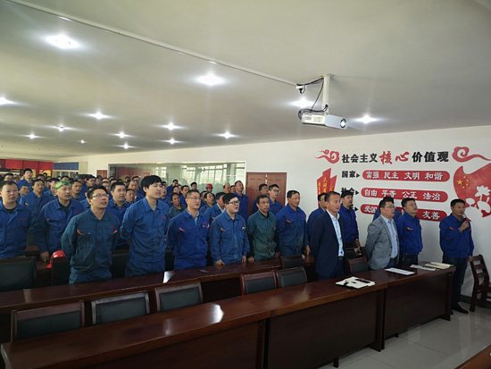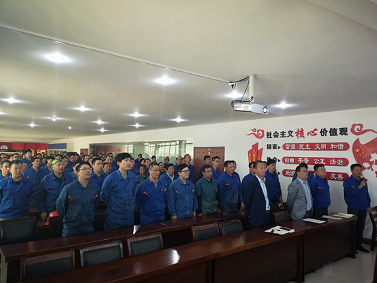 会议开始前全体与会人员齐声高呼公司的使命和目标---自主创新、振兴产业,贡献国家、回馈社会,做中国最大、最强的封头专业制造商。