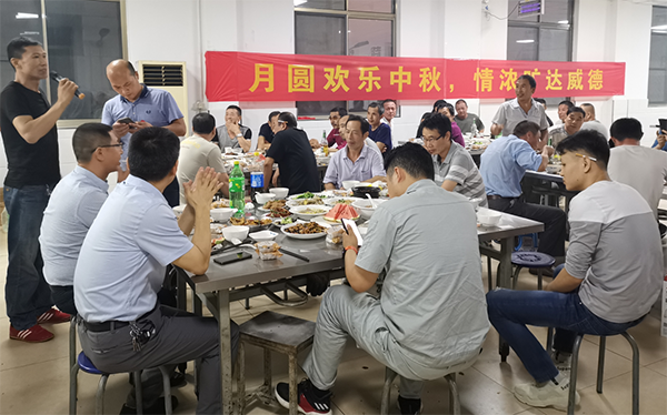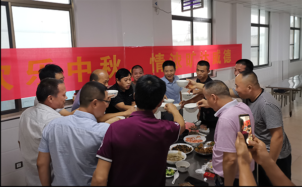 一年一度的中秋佳节如期而至。公司有部分外地员工因假期短、路途远而不能在节日当天与家人团聚。为解员工思乡之情,由公司工会牵头,于9月13日晚,中秋团圆之夜,特举行“迎中秋·话团圆”聚餐活动,与外地员工共度中秋佳节。该活动由工会主席龚文伟主持,生产部长吴亦平、副部长袁祖强,综合部副部长徐强、采供部副部长陈亮等参加了活动。 本次聚餐活动参加人数共近70人。当天傍晚,秋风飒爽,让人倍感舒适, 食堂工作人员忙碌着备下聚餐酒菜,同时公司还为现场每位人员分发分别印有“威德封头”、“感恩有您”的手工定制月饼,让大家既能感受节日气氛,又能享受公司的浓浓情意。晚餐中大家举杯同庆,为旷达威德,为各位同仁送上最真挚的祝福,在场人员即兴演唱《花好月圆夜》、《最真的梦》、《难舍难分》、《执着》等经典歌曲,为现场增添了热烈气氛,同时还有员工自发感言,感谢公司能心系员工,感谢领导能放弃陪伴家人的机会来陪同员工共度佳节。 随后,工会还安排了小型抽奖活动,由现场领导参与抽奖,即开即奖,其中产生一等奖1名,二等奖2名,三等奖3名,鼓励奖4名,分别颁发了电饭煲、电火锅、保温杯、洗衣液等奖品,最后活动在“但愿人长久,千里共婵娟”歌声中圆满结束!大家吃得舒心、喝得高兴、唱得尽兴,对所有驻厂员工来说,这又是一个值得纪念、温馨而又有意义的中秋佳节。 一轮明朗的月,两块如月的饼。中秋望月,让我们为外地员工的亲人送去一份诚挚的祝福,带去我们亲切的问侯,与外地员工一起守候在旷达威德家,千里明月中。为喜迎厂庆7周年纪念日,公司将于9月15日举行厂庆纪念系列活动。