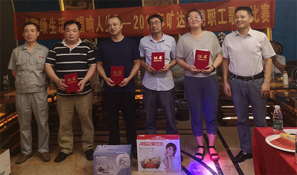 秋风送爽,丹桂飘香,在祖国母亲70华诞,旷达威德厂庆7周年之际,我们公司举办了“庆国庆,迎厂庆”系列活动之第二届旷达威德职工歌唱比赛。9月15日晚上18点旷达威德职工歌唱比赛在漕桥星期八娱乐中心999包厢举行,共有来自各个部门的14名职工报名参加了此次比赛,参加此次比赛的选手大多数是新面孔,错过了第一届,绝对不能再错过第二届,大家的兴致都比较高。 本次比赛由工会主办,由行政副总龚文伟(工会主席)担任现场总指挥,海外科李立娟主任担当了现场副总指挥,综合部黄俊峰副科长帮选手们播放参赛曲目的伴奏音乐),特意邀请了三位音乐老师担任评委,由我担任现场的串讲主持人。比赛开始之前由龚总宣布了本次比赛规则及评分标准,并代表工会预祝各位选手唱出风采,赛出水平。 本次比赛的出场次序是由选手们到场后各自抽签而得的,我们的上一届的K歌之王李志刚抽了第一个次序,因为有参赛经验,只见他声情并茂的演唱了比较挑战唱功的《爱是你我》,获得了满堂喝彩,也让其他选手缓解了紧张的心情。也“为难”了评委老师,这么高的水准又是第一个献唱,分数很难打。第二个出场的是生产管理部成形班的吴兆彪,他演唱了一首林俊杰的《曹操》,柔中带刚,也获得了大家的一致好评。同样的地方,熟悉的歌曲,大家感觉就是一场聚会,把自己的最好的状态发挥出来就行。好歌一首接一首,质保部的陆娇妮给大家带来一首《香水有毒》,音调准,咬字清晰,听着是一种别样的享受。叛逆、多变、乐观和坚持是我们心目中的“悟空精神”,生产部成形班的张涛的一首《悟空》把此次比赛推向了高潮,字正腔圆,掌声此起彼伏。 此次参赛曲目比较多元化,有经典老歌,有热门歌,也有老歌新唱,真的就像是一场现场LIVE音乐会。在评委老师的公平公正的点评及评分下,经过李立娟主任的认真统计,由评委老师代表作了详细客观的评价,评委老师一致认为,本届比赛,大家都发挥得比较好,对歌曲掌控得比较到位,音准好,台风好,也对下一次比赛提出来一些宝贵意见。为了一睹评委老师的风采,我们隆重邀请了评委秦老师、殷老师各高歌一曲,言传身教,感觉我们置身于演唱会,大家大呼“赚到了”。最终由常务副总杨庆高宣布了比赛结果:生产管理部成形班的张涛获得了第一名,切割班刘逸东获得第二名,质量保障部陆娇妮第三名,邱金东第四名,孙欢第五名,付宜选等三名选手并列第六,其余选手获得了鼓励奖。杨总和龚总对获得前四名的选手当场颁奖并合影留念。 爱生活,爱工作,爱唱歌,爱拼才会赢,爱唱的同仁们,欢迎踊跃参与K歌活动,期待下一年度的歌唱比赛更精彩!