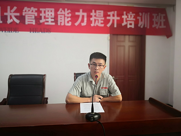 龚文伟副总经理在开训前发表讲话,他首先强调学习需要主动、积极,希望大家能认真学习,学有所成,学以致用,为公司的发展添砖加瓦;其次对班组长系列培训课程体系进行了介绍,并强调班组长作为企业中坚力量,企业的各项工作都要通过班组去组织和贯彻落实,班组长是班组的带头人,承担着带领班组优质高效地完成工作的职责。随着企业的发展,我们所面临的问题也越来越多样化,因此我们需要认真学习,提升自己的管理能力。他表示,为了达到培训效果,本年度班组长系列培训特意制定了考核制度,包括课堂考核、月度考核及年度考核。探伤酸洗班班长胡勇作为学员代表在动员会上作了参训承诺。
