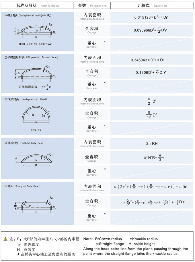 常用形状封头技术参数的计算(一)